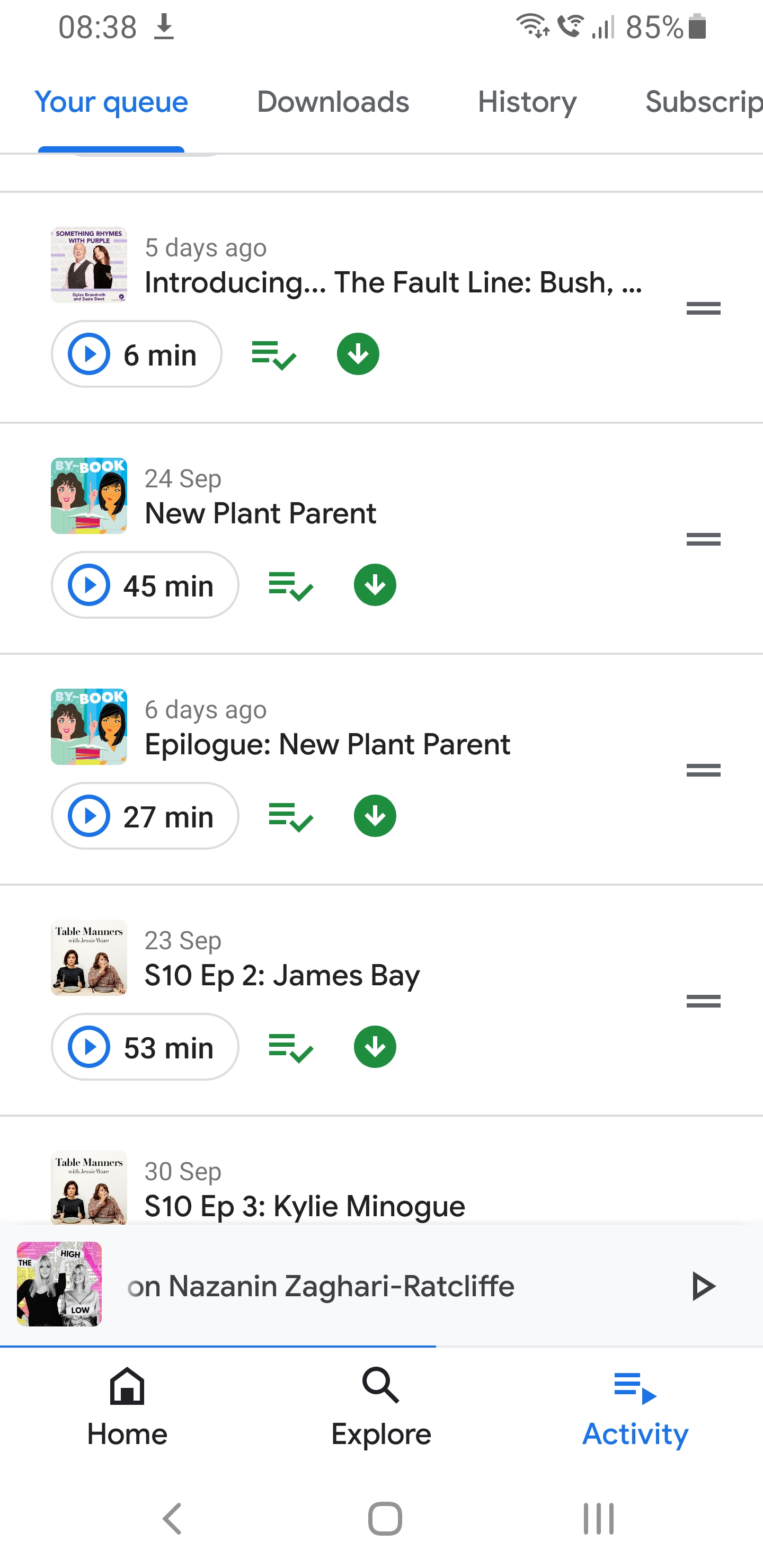 I currently have 303 episodes sitting in my queue waiting for me to listen to. The trouble is I have to listen to them from the very beginning. I can’t start listening to a new podcast several episodes in or just jump in and out of episodes. And some of them last over half an hour so it’s not easy to fit a whole episode in during my walk. And of course, they are all adding new content each week so my queue just gets longer.