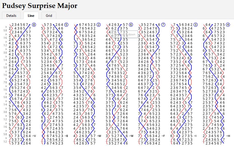 This last Monday we had enough to ring some Surprise Major methods. We started with some Yorkshire to warm up with. Then rang some Bristol which proved a little too much for some, so it crashed out. C asked me what I’d like to ring so I suggested some simple spliced: Cambridge, Yorkshire, and Superlative. I did also want to throw in some Lincolnshire but others in the band were less confident, so we stuck to the three methods.