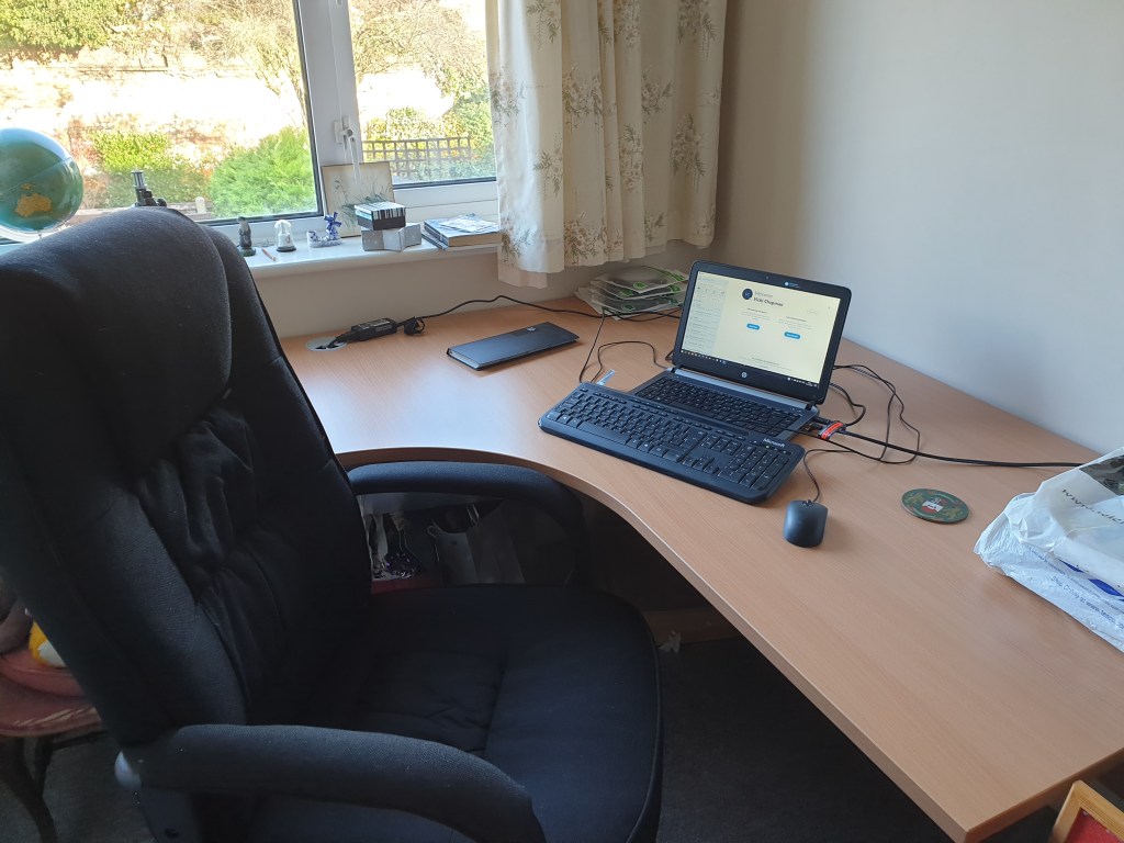 With the Covid-19 situation suggesting that people should work from home if they could, there just wouldn’t be a sensible place for me to do that. I also want a place to put all my #bellringing workbooks etc. And I could be on an evening conference meeting and C could still use the main PC for whatever he wanted to get on with.